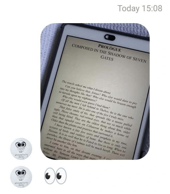 Lorna Lee (of @unexpectedlearningjourney fame) displaying some Spartan-style laconicism upon reading the very first page (fun fact: Lorna was in fact the first person to read the novel top to bottom).